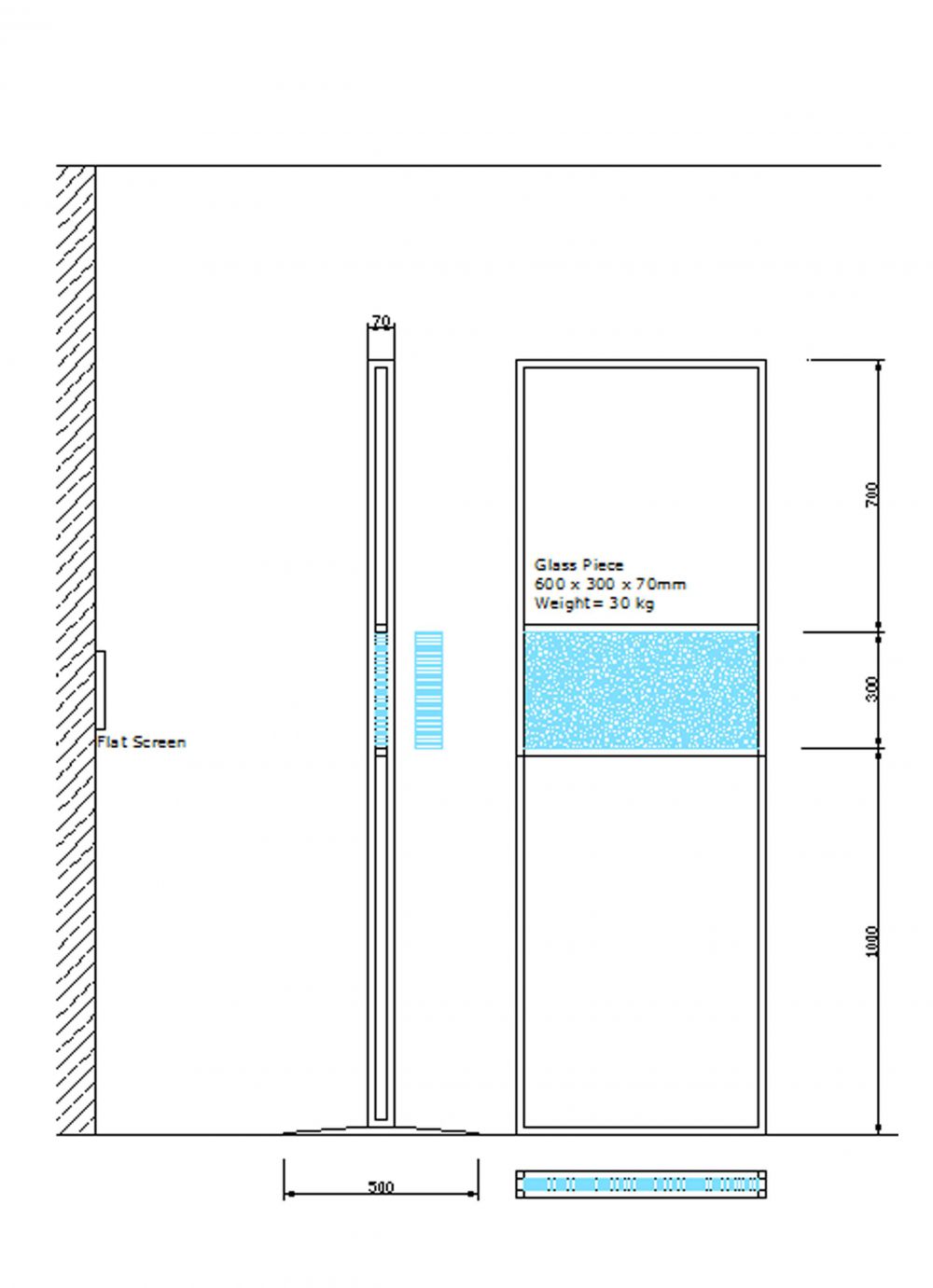 Dimensions: 60cmx200cmx8cm, Glass, Stainless Steel, Flat Screen, Camera